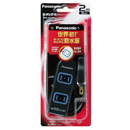 水しぶき・ホコリの侵入をガード!!パナソニック ザ・タップX(3コ口・2m) WHA2523BKP 価格: 850円 レビュー評価:0.0 レビュー数:0 この商品の出荷予定日は翌営業日?2営業日※在庫僅少時は4?7営業日での出荷となります【特徴】●一時的な水しぶき・ホコリの侵入をガードする「防水扉」付●内ボディにトラッキングに強い「ユリア樹脂」外ボディーにも「燃え広がりにくい樹脂」を採用した熱に強い二重ボディ●発熱を抑えた「新接続コンセント」です●はがれにくい極薄の絶縁被ふく付プラグで感電への不安を抑えます※注意 屋外や風呂場など、多量に水のかかる所では使用しないで下さい【仕様】●寸法:タテ210×ヨコ90×アツミ45●質量:228g(本体)●定格:15A 125V●色名称:ブラック●コードの長さ:2m●差し込み口数:3コ口●プラグ形状:スナッ Supported by 楽天ウェブサービス |
